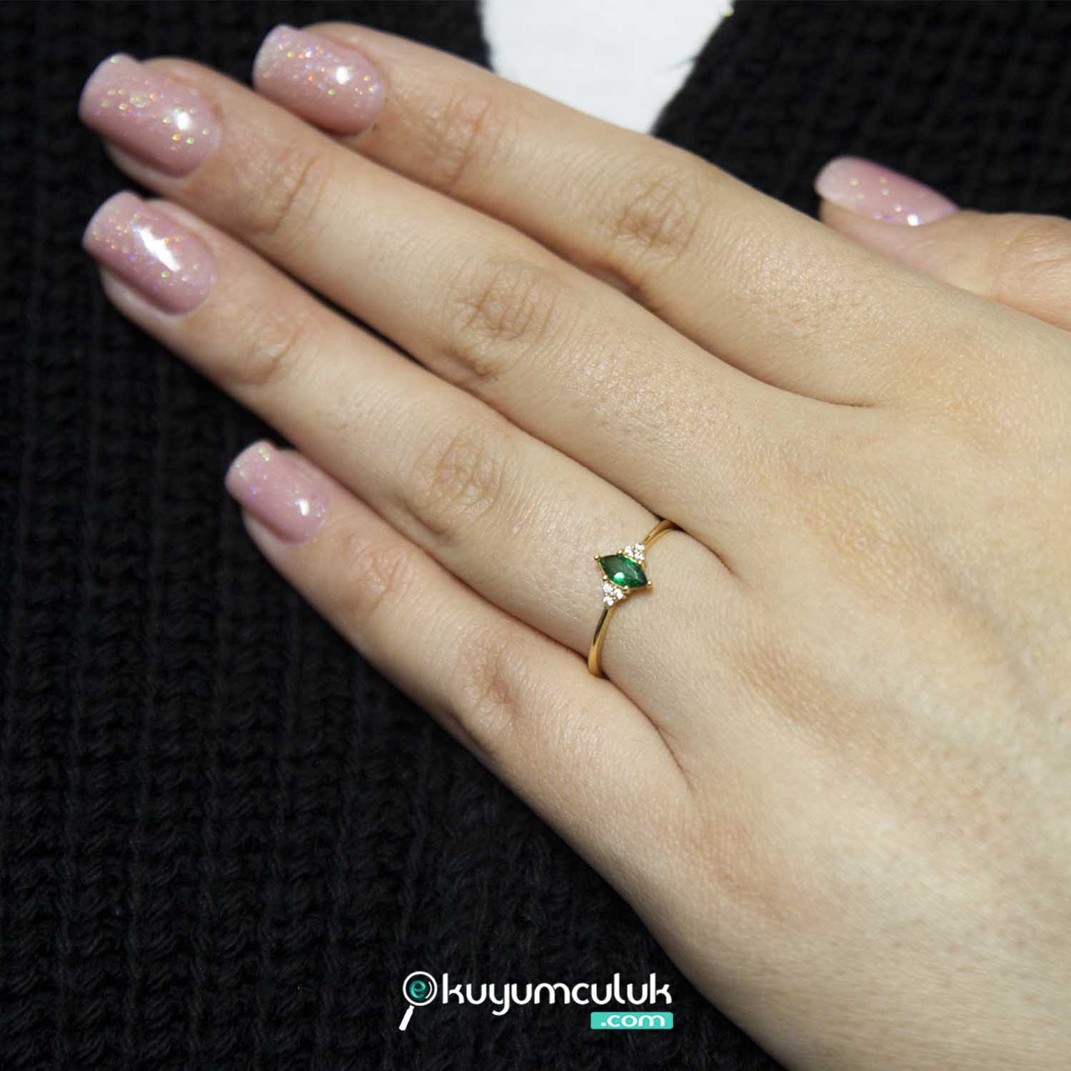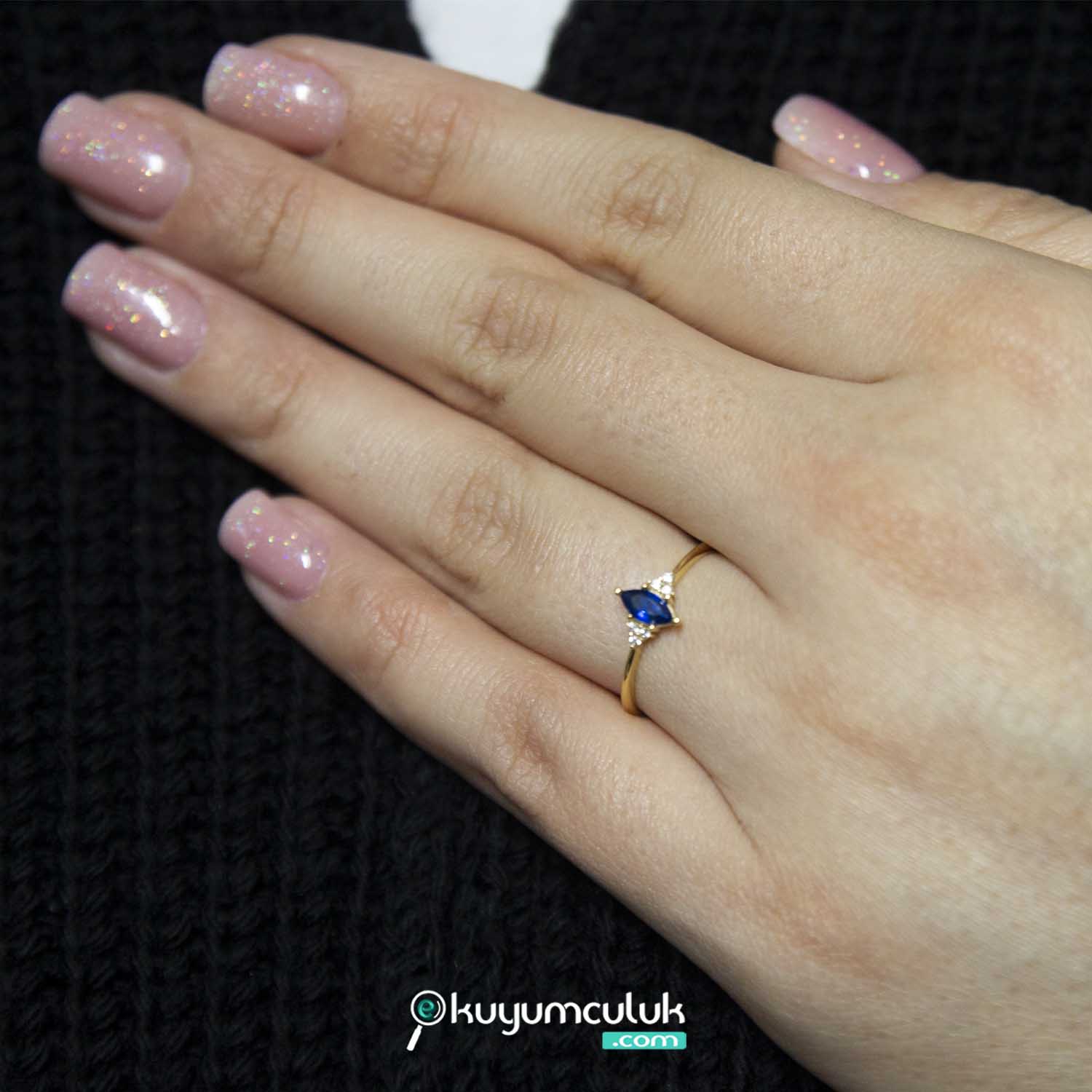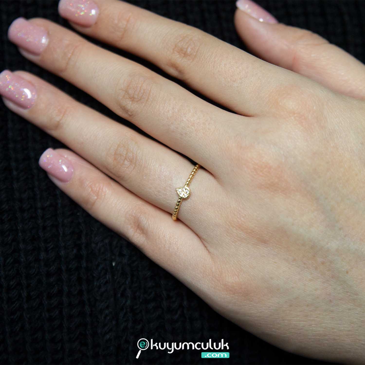 14 Ayar Taşlı Su Damlası Yüzük