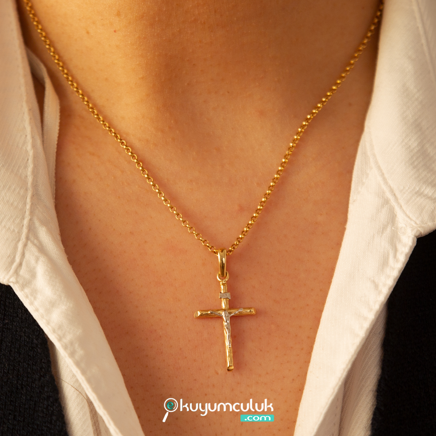 14 Ayar Altın Hz. İsa Haç Kolye Ucu