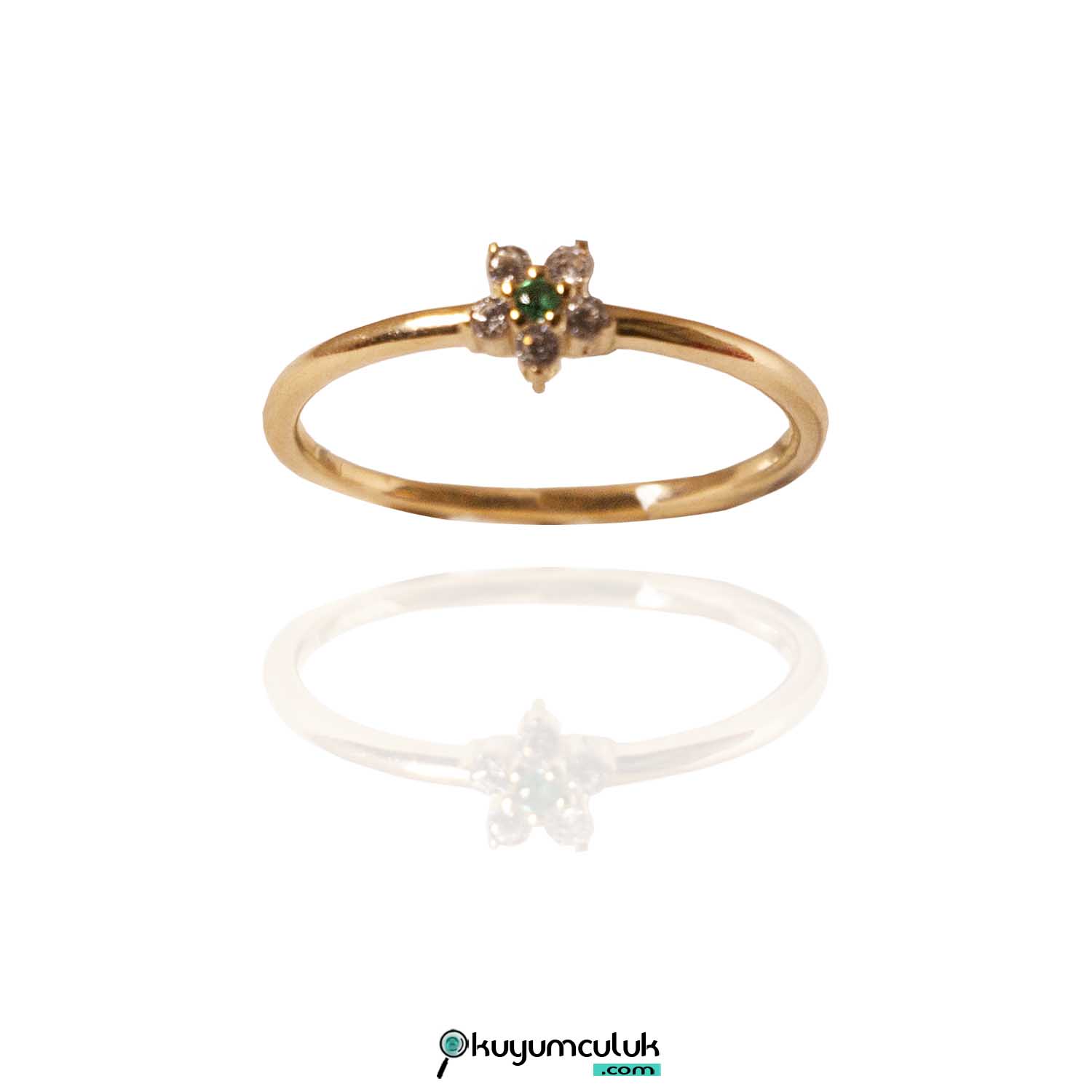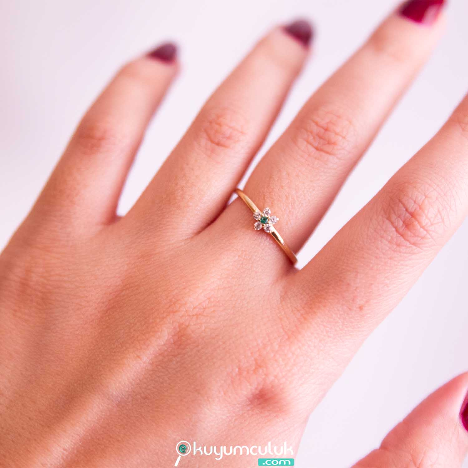 Yeşil Taşlı Çiçek Yüzük
